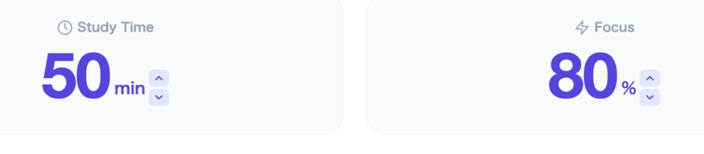 Every time students log a session, they encounter a slider that asks them to rate their concentration level from 0 to 100%. This is a deliberate metacognitive prompt — it forces students to reflect on the quality of their study, not just the quantity.