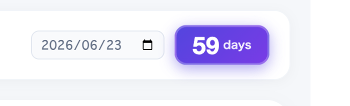 Students set target dates for exams (Eiken, custom tests) and see a live countdown with color-coded urgency — red for ≤7 days, yellow for ≤30 days.